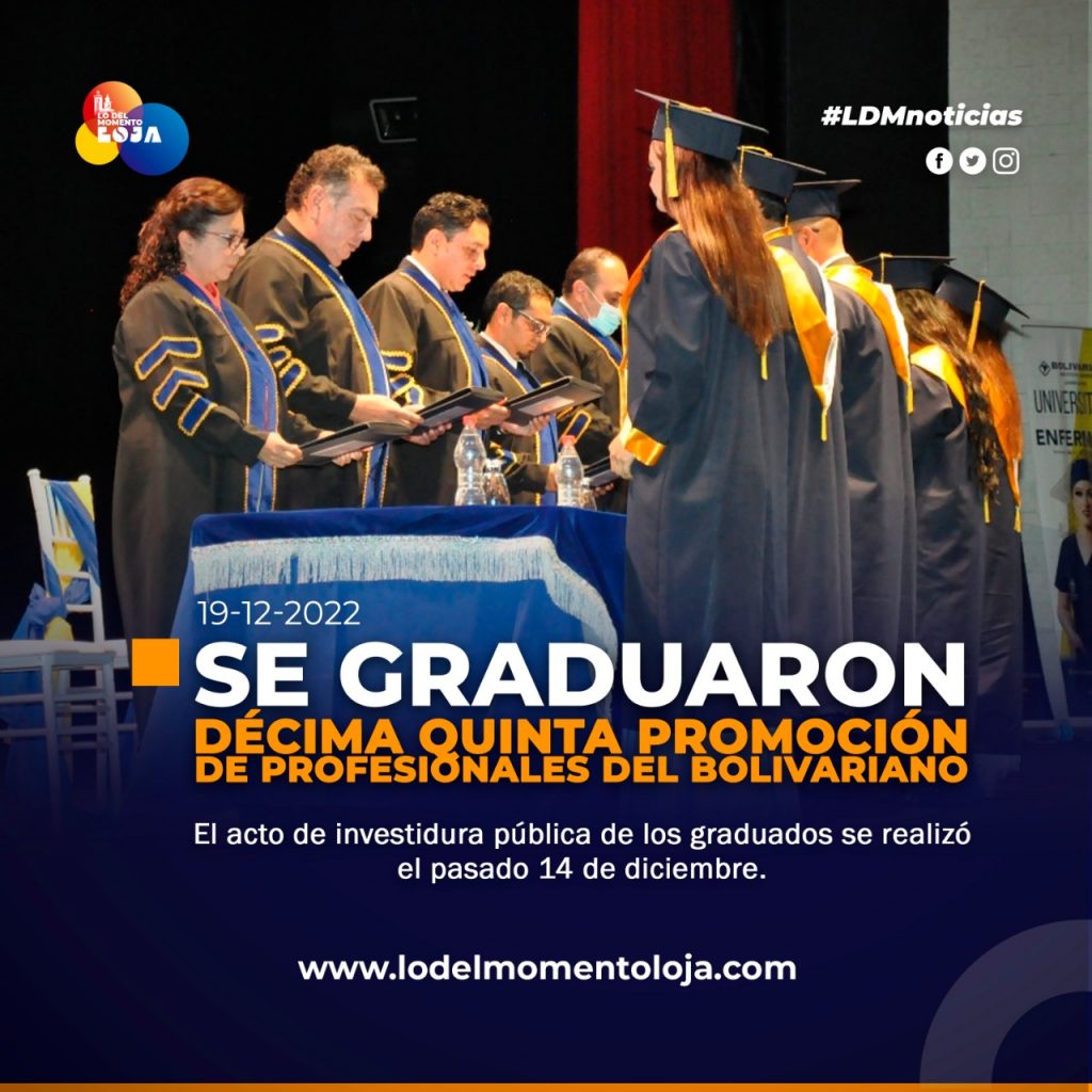 La ceremonia solemne de graduación se efectuó el 14 de diciembre durante un emotivo acto con la presencia de autoridades nacionales, locales y en compañía de los familiares de los graduados, quienes acudieron a las instalaciones del teatro nacional “Benjamín Carrión Mora” de Loja.