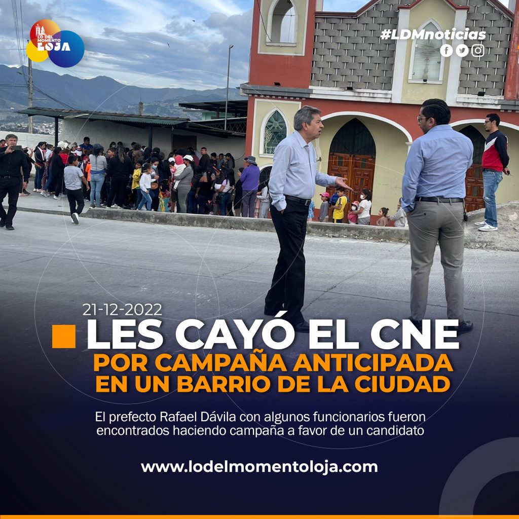 En un barrio de la ciudad de Loja, Prefecto de Loja Rafael Dávila junto a otros funcionarios de la Prefectura de Loja se encontraban realizando campaña anticipada a favor de un candidato, acto que fue denunciado inmediatamente por un morador del barrio El Plateado ante las autoridades del CNE Loja, y en efecto, la autoridad competente en periodos electorales lo encontró realizando esta actividad.