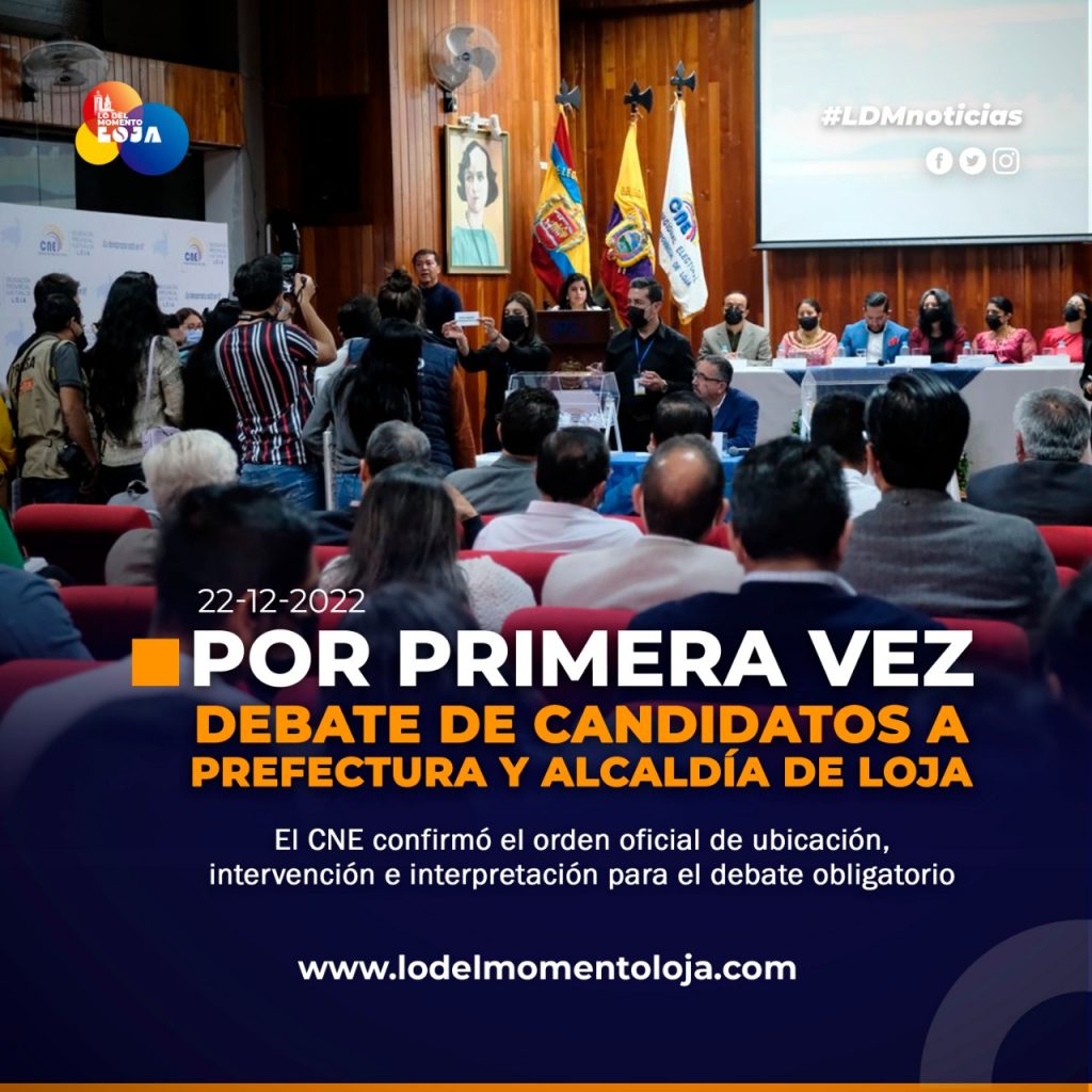 #Loja | El CNE confirmo el orden oficinal de, ubicación, intervención e interpelación, para el debate obligatorio, donde tendrán que ser partícipes todos los candidatos para la prefectura de Loja y alcaldía del cantón Loja.