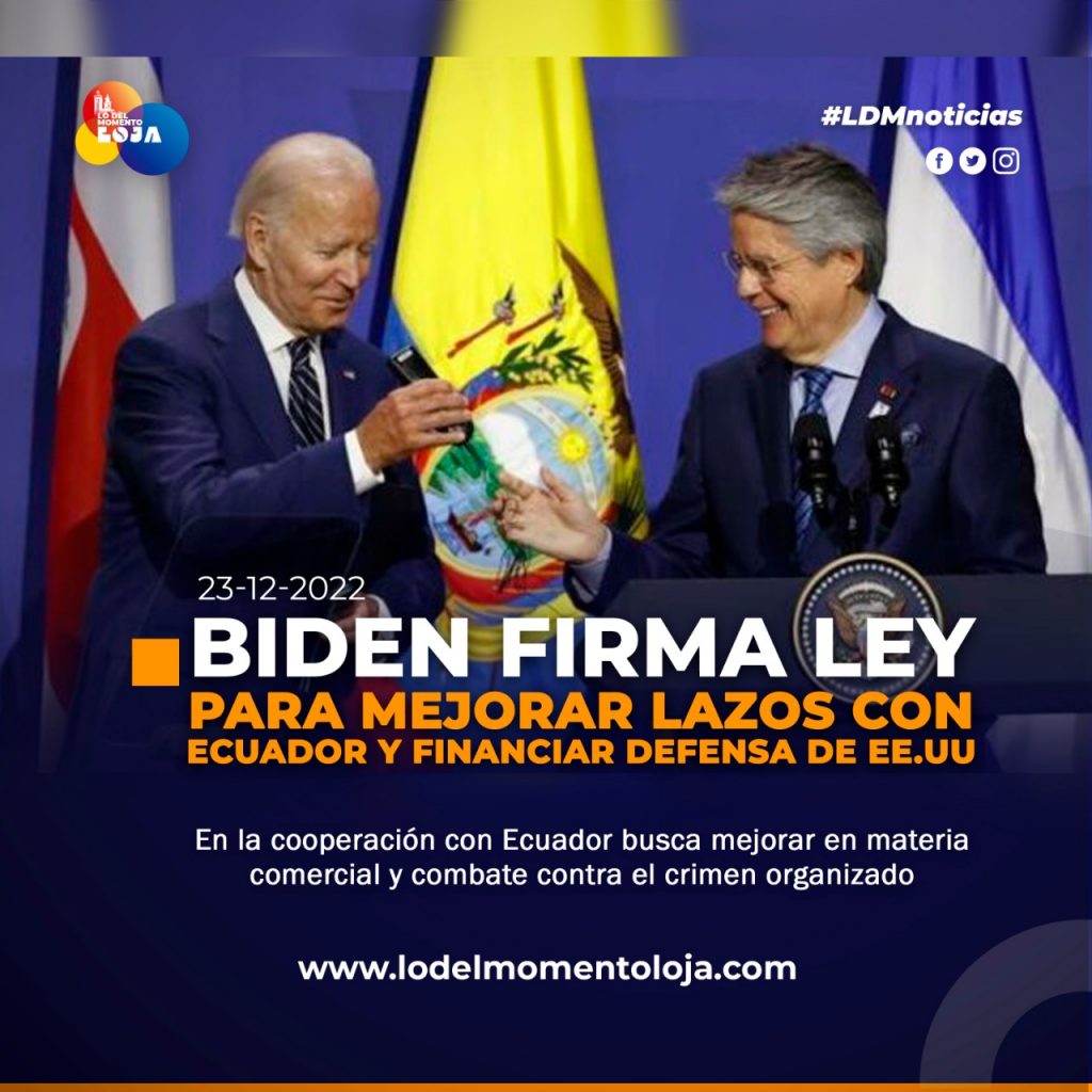 El presidente de Estados Unidos, Joe Biden, firmó este viernes 23 de diciembre de 2022, una ley destinada a financiar la Defensa del país y que contiene otro proyecto legislativo para mejorar la cooperación con Ecuador, especialmente en materia comercial y combate contra el crimen organizado.