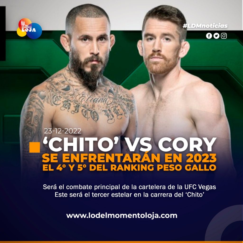 🇪🇨🥊🇺🇸¡Regresa al octógono! La UFC confirmó la próxima pelea del Chito Vera, la cual será un combate estelar ante el estadounidense Cory Sandhagen el 18 de febrero de 2023, el duelo será un espectáculo, ya que se enfrentarán al número cuatro del ranking (Vera) contra el número cinco (Sandhagen), del peso gallo.