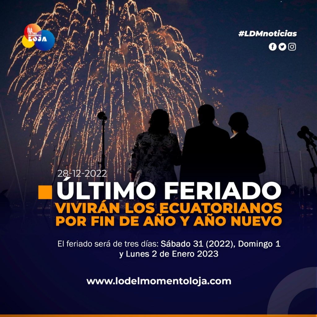 Los ecuatorianos viviremos el ultimo feriado que corresponde al año 2022 el cual no es recuperable, el mismo corresponde al feriado de fin de año y año nuevo.