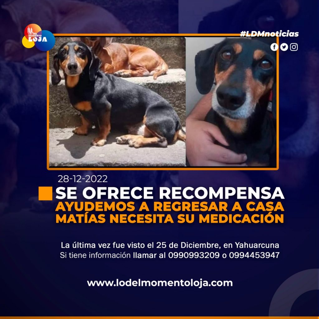 🥺🐶🔎 ¡Perrito perdido! Un can de 13 años de edad, que corresponde al nombre de Matías José, se perdió y necesita medicación para su corazón, tiene la colita torcida.