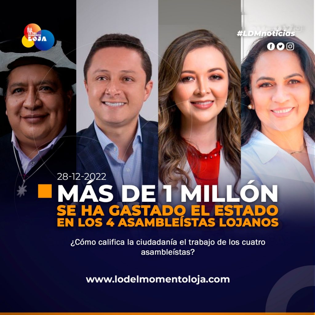 #Loja | Más de un millón de dólares se ha gastado el Estado ecuatoriano en los cuatro asambleístas de Loja; Byron Maldonado, Johanna Ortiz, Lucia Placencia y Manuel Medina. Pero, ¿cómo califica la ciudadanía el trabajo de los cuatro asambleístas?