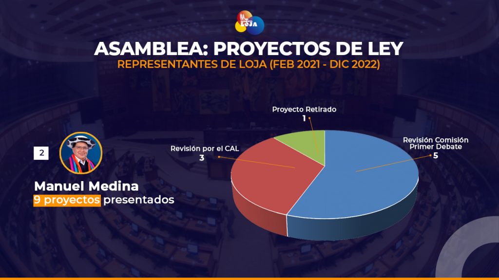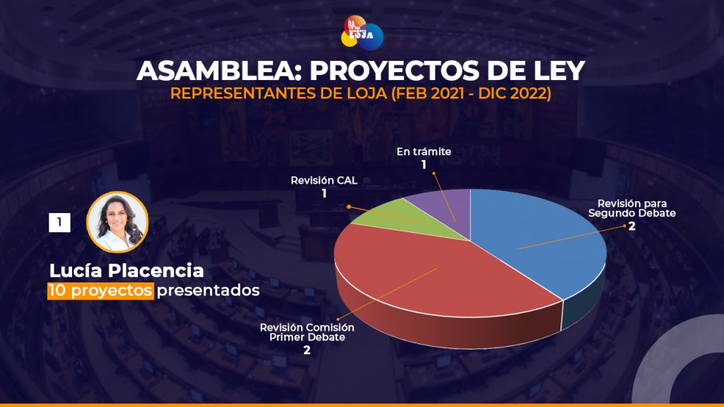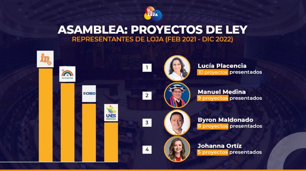 La información que vamos a explicar a continuación ha sido extraída del portal web oficial de la Asamblea Nacional, apoyada en datos del Observatorio Legislativo y contrastada con los diferentes legisladores de la provincia de Loja, de los cuales nos ha dejado los siguientes resultados: