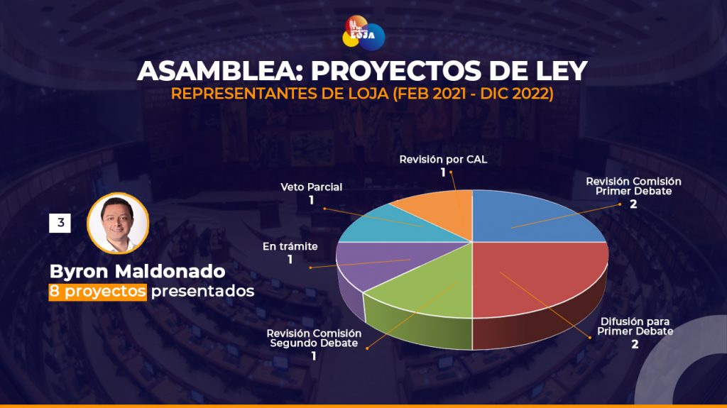 En las siguientes gráficas se muestran los procesos por los que están atravesando los Proyectos de Ley por parte de los distintos asambleístas por la provincia de Loja.