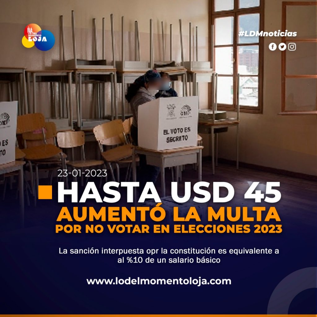 La Constitución establece que, aunque el voto es un derecho, es también una obligación de los ciudadanos. Por ello, impone una multa a quienes no vayan a votar, equivalente al 10% de un salario básico. Es decir que para las elecciones de 2023, esa sanción será de USD 45.