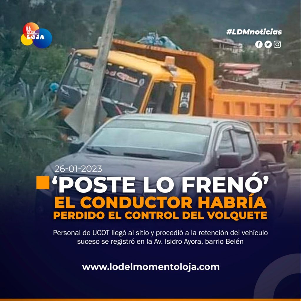 En la avenida Isidro Ayora, a escasos metros de la iglesia del barrio Belén, noroccidente de la ciudad, un volquete protagonizó un aparatoso siniestro de tránsito. No hubo heridos.
