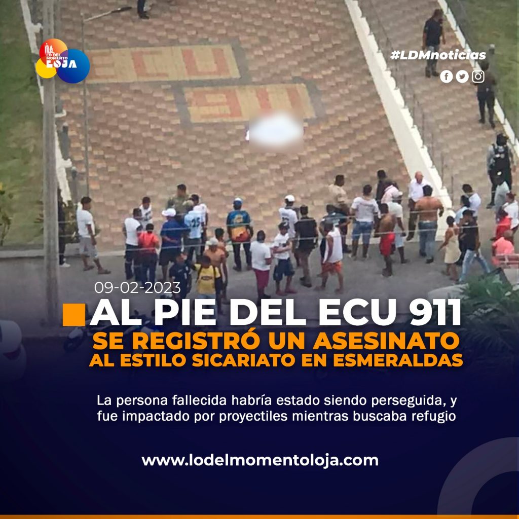 😱🚨🔫 ¡En sus narices! Durante horas de la tarde de este 09 de Febrero, se registró un asesinato al estilo sicariato, al pie del Servicio Integrado de Seguridad ECU 911 Esmeraldas. Según transeúntes, el ciudadano habría sido perseguido por un malhechor en motocicleta y mientras intentaba buscar ayuda en dicha institución, fue alcanzado por proyectiles de arma de fuego.