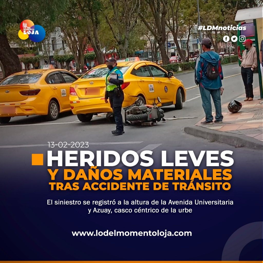🚗💥🏍️ ¡Accidente en Loja! A la altura de la Av. Universitaria y Azuay, se registró un accidente de tránsito que deja como saldo, personas heridas y varios daños materiales.