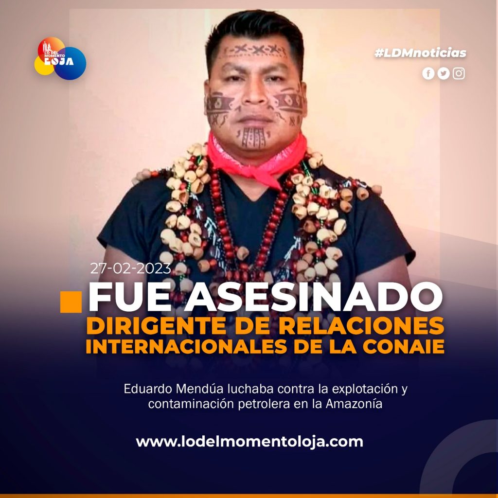 Según una publicación de Twitter de la Confederación de Nacionalidades Indígenas (Conaie), Eduardo Mendúa se encontraba en su chacra cuando fue abordado por encapuchados que le dispararon.
