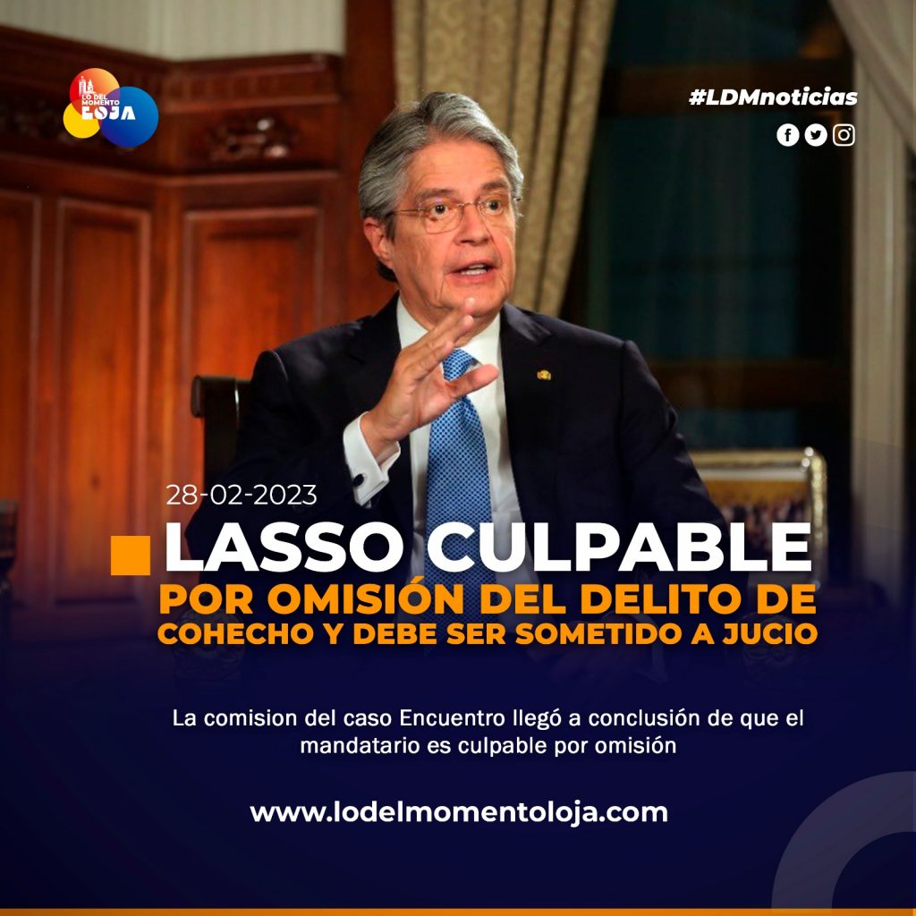 😱👀🙃 ¡Culpable! Informe de la Comisión del caso Encuentro concluye que el primer mandatario ecuatoriano, Guillermo Lasso es culpable de comisión por omisión del delito de cohecho y debe ser sometido a juicio político.