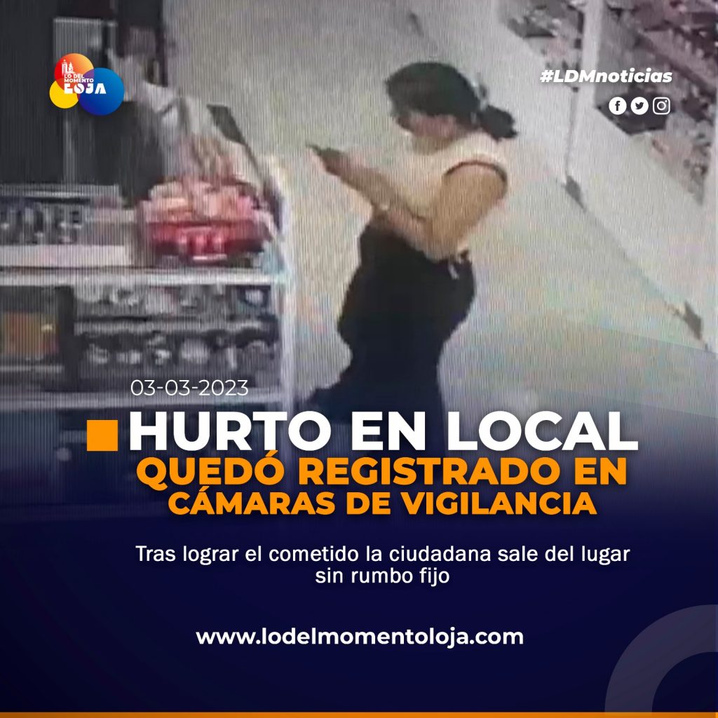 👤👀🎥 ¡Captada en video! Trabajadores del local Esskala Colección, ubicado en el centro de Loja a la altura de las calles 10 de Agosto y Sucre, envían varios videos de hurto por parte de una señorita, que ingresa al lugar con el fin de preguntar precios de algunos productos.