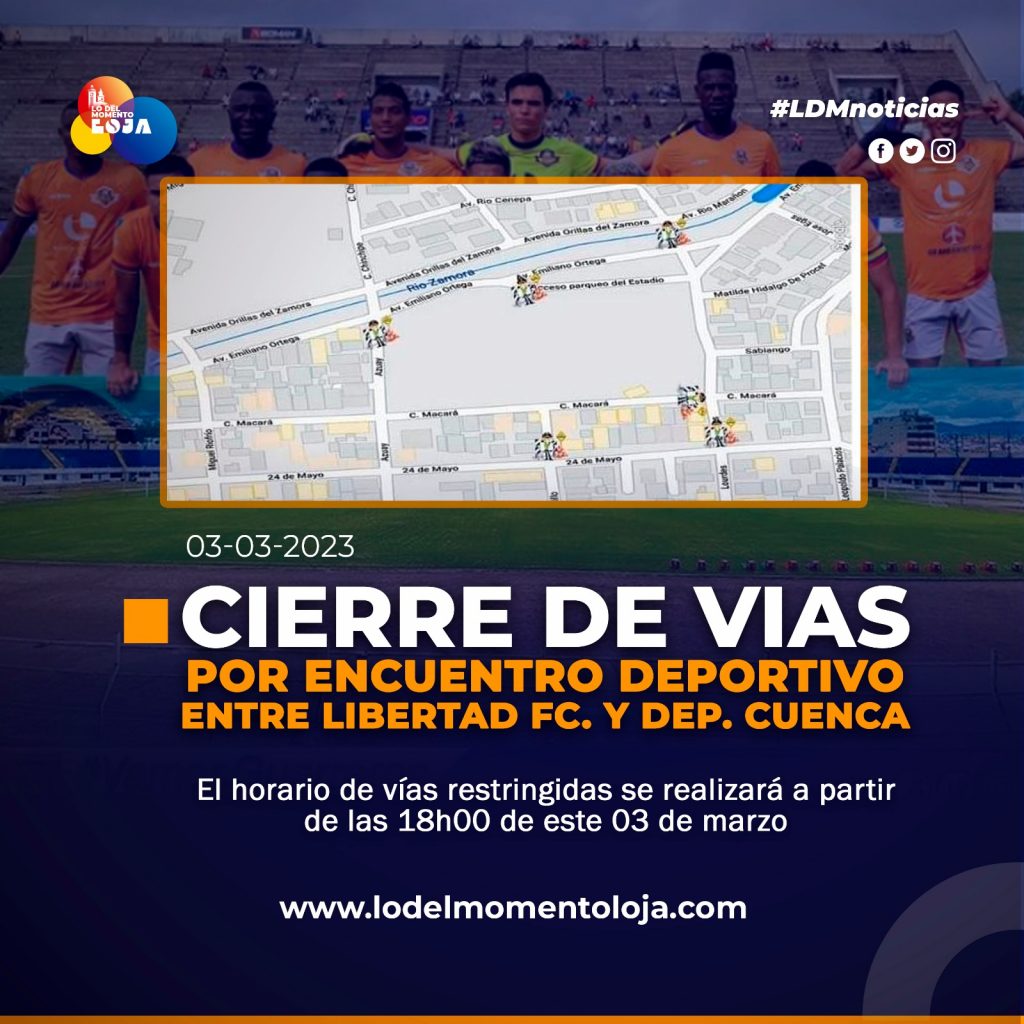 🧡⚽🚧 ¡Debut como local! Debido al partido entre Libertad F.C. y Dep. Cuenca, las vías que se encontrarán restringidas a la circulación vehicular son: