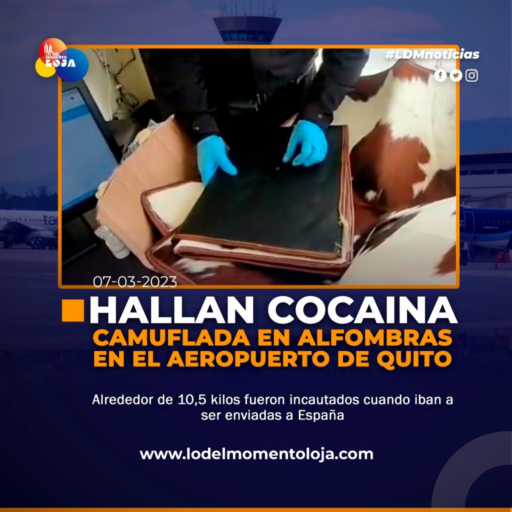 🕵️👮🏻🛬 ¡Droga incautada! Alrededor de 10 kilos 500 gramos de cocaína impregnados en alfombras, que pretendían ser enviadas en encomiendas hacia Barcelona y Madrid (España), fueron detectada e incautadas durante operativos antidrogas, en el aeropuerto de Quito.