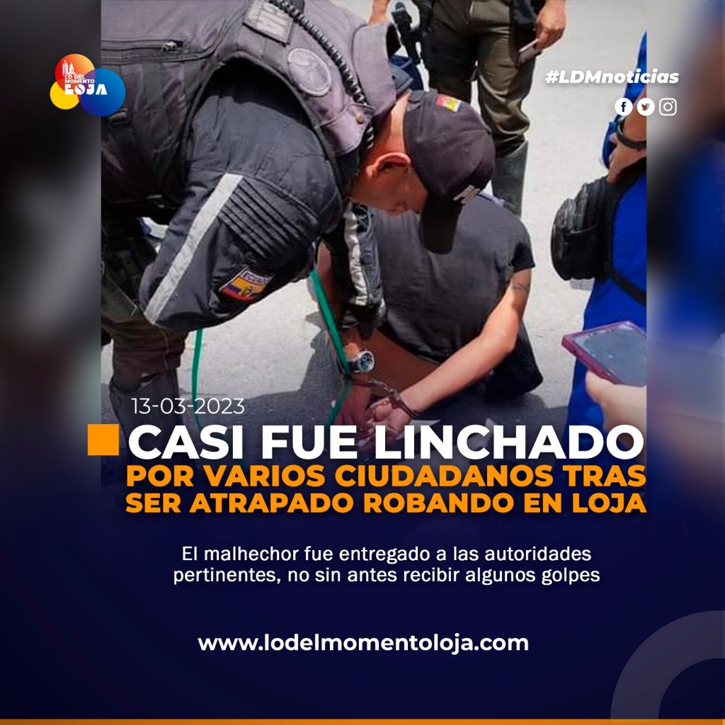 👤⛓️👀 ¡Con las manos en la masa! Durante el fin de semana, a la altura de las calles 18 de Noviembre entre Celica y Gonzanamá, moradores del casco céntrico lograron la aprehensión de un amigo de lo ajeno, por el delito de robo a una mujer. Luego de brindarle algunos golpes fue entregado a la Policía Nacional.