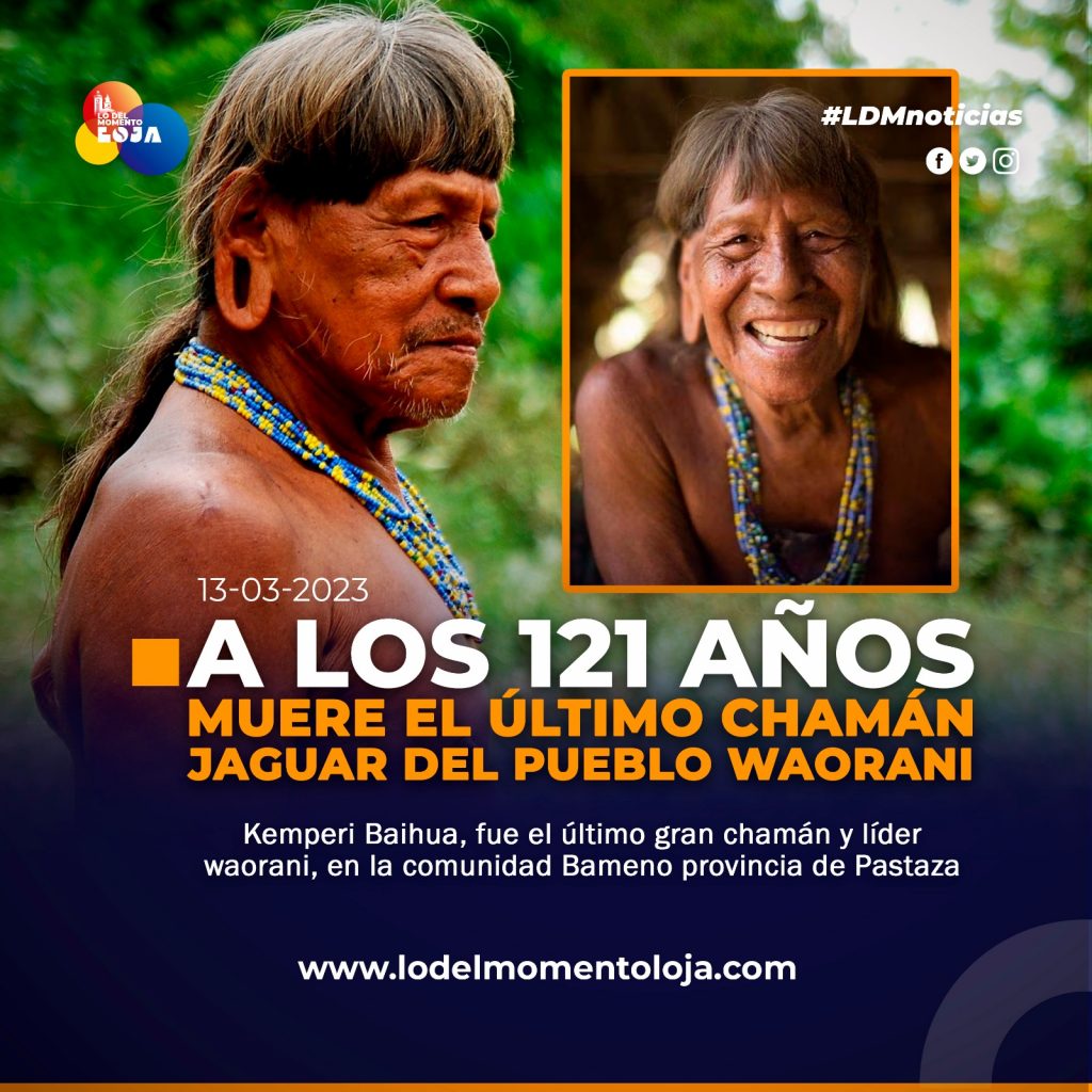 🥺➕🙏🏻 ¡El líder Wao falleció! A sus 121 años de edad, en la comunidad Bameno, provincia de Pastaza, murió el último gran chamán y líder waorani, Kemperi Baihua. Él se encargaba de enseñar conocimientos ancestrales y los mejores días de caza, además de proteger espiritualmente a la comunidad del depredador más peligroso de la selva, el jaguar.