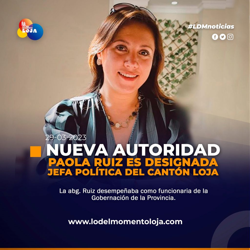👩🏻🎓👀🫡 ¡Será el reemplazo de Sarzosa! La abogada e ingeniera en administración turística, Paola Ruiz Ochoa, quien se desempeñaba como funcionaria de la Gobernación de la Provincia de Loja, es designada nueva Jefa Política del cantón Loja.