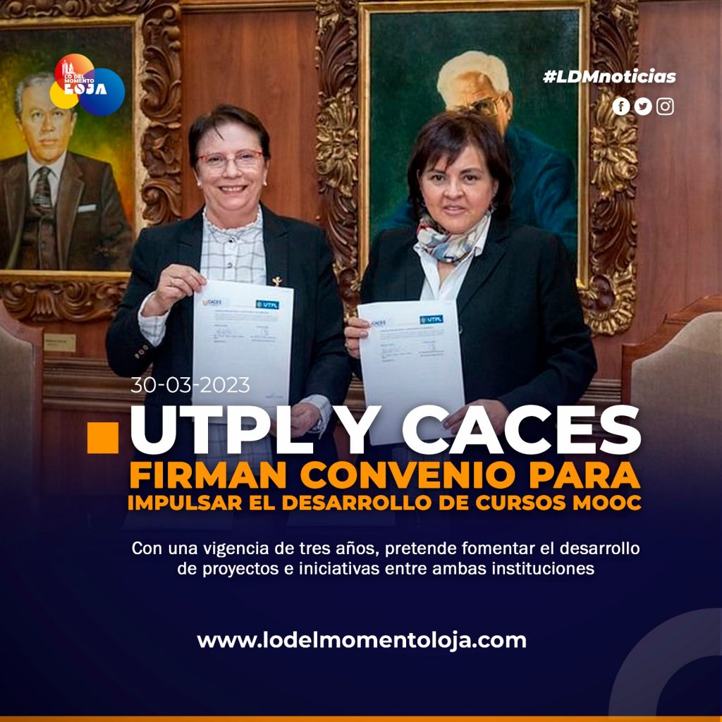 La Universidad Técnica Particular de Loja (UTPL) y el Consejo de Aseguramiento de la Calidad de la Educación Superior (CACES) firmaron un convenio marco de cooperación con el objetivo de impulsar el desarrollo de actividades enfocadas en la elaboración de cursos MOOC a través del sistema de gestión de aprendizaje Moodle.