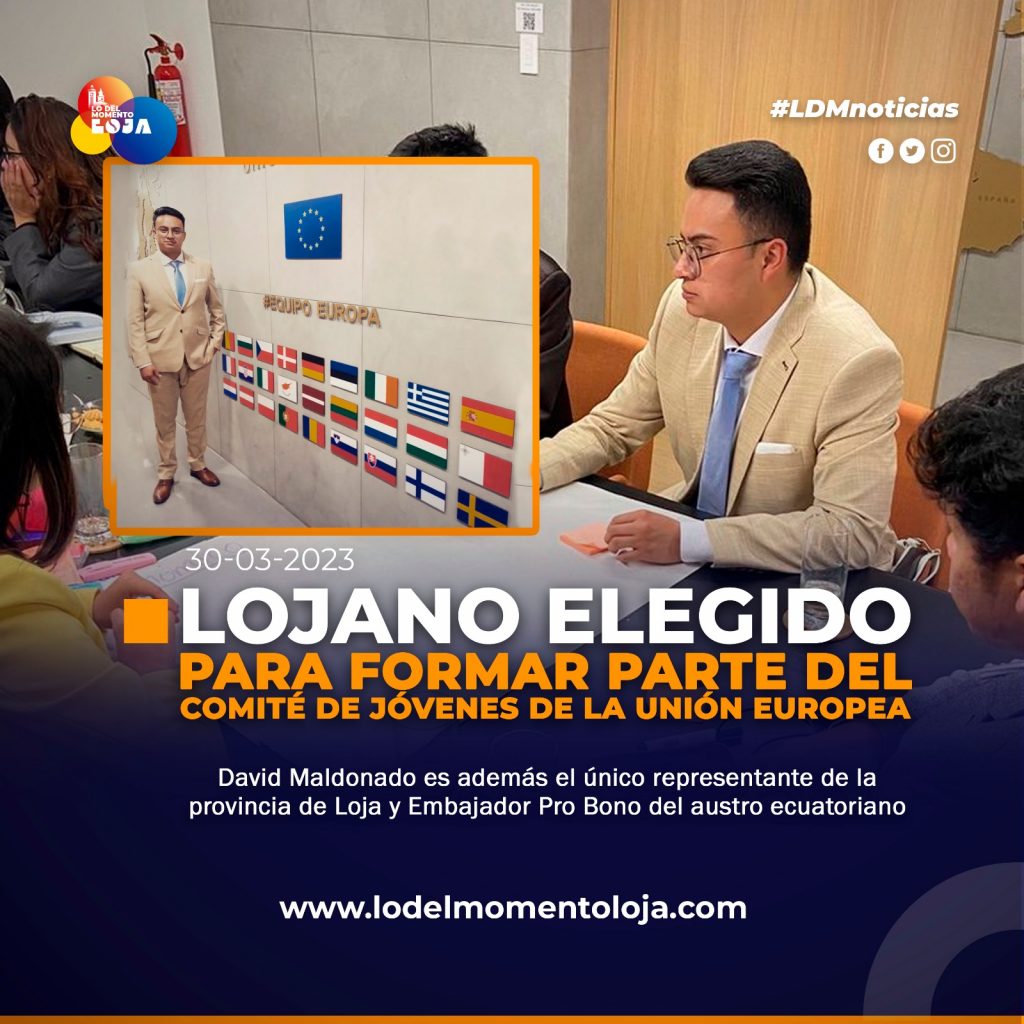 😱💪🏼🫡 ¡El único lojano! La Unión Europea en Ecuador seleccionó a David Santiago Maldonado Peralta, de 23 años como uno de sus representantes más jóvenes dentro del Comité Consultivo de Jóvenes de la Unión Europea en Ecuador CoCoECU, así como único representante en la provincia de Loja y Embajador Pro Bono del austro ecuatoriano.