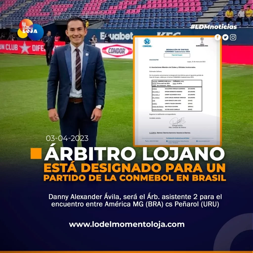 😱🇪🇨⚽ ¡Representando al Sur! El árbitro lojano Danny Alexander Ávila fue designado cómo Arb. Asist. 2, para el partido de fase de grupos de la Conmebol, entre América y Peñarol, el próximo 05 de abril en Belo Horizonte – Brasil.