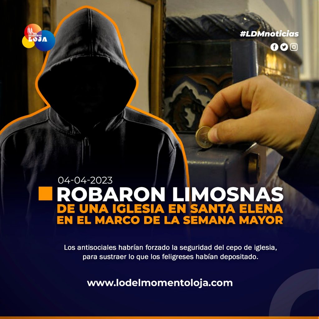 😱👤💰 ¡Se llevaron las limosnas! Delincuentes habrían ingresado en una iglesia en Santa Elena y se llevaron toda la limosna que habían depositado los feligreses en el cepo de la iglesia, en el marco de la Semana Santa o también conocida como Semana Mayor.