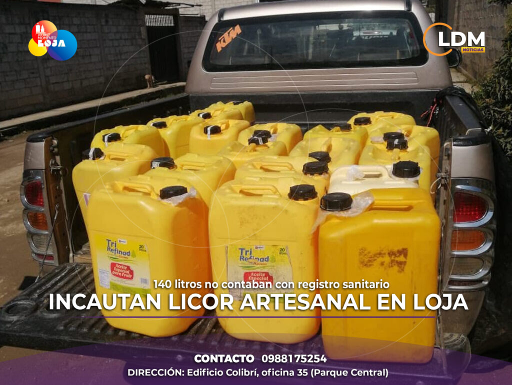 Durante operativos de control realizados por Policía Nacional junto autoridades de Loja, se logró incautar alrededor de 140 litros de licor artesanal, no contaba con el registro sanitario correspondiente.