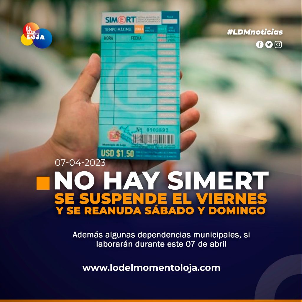 👮🏻📝👤 ¡Solo por hoy! El Sistema Integrado de Estacionamiento Rotativo Tarifado (Simert), se suspende este Viernes y se retomará el día Sábado y Domingo respectivamente, en las zonas establecidas y en los horarios habituales.