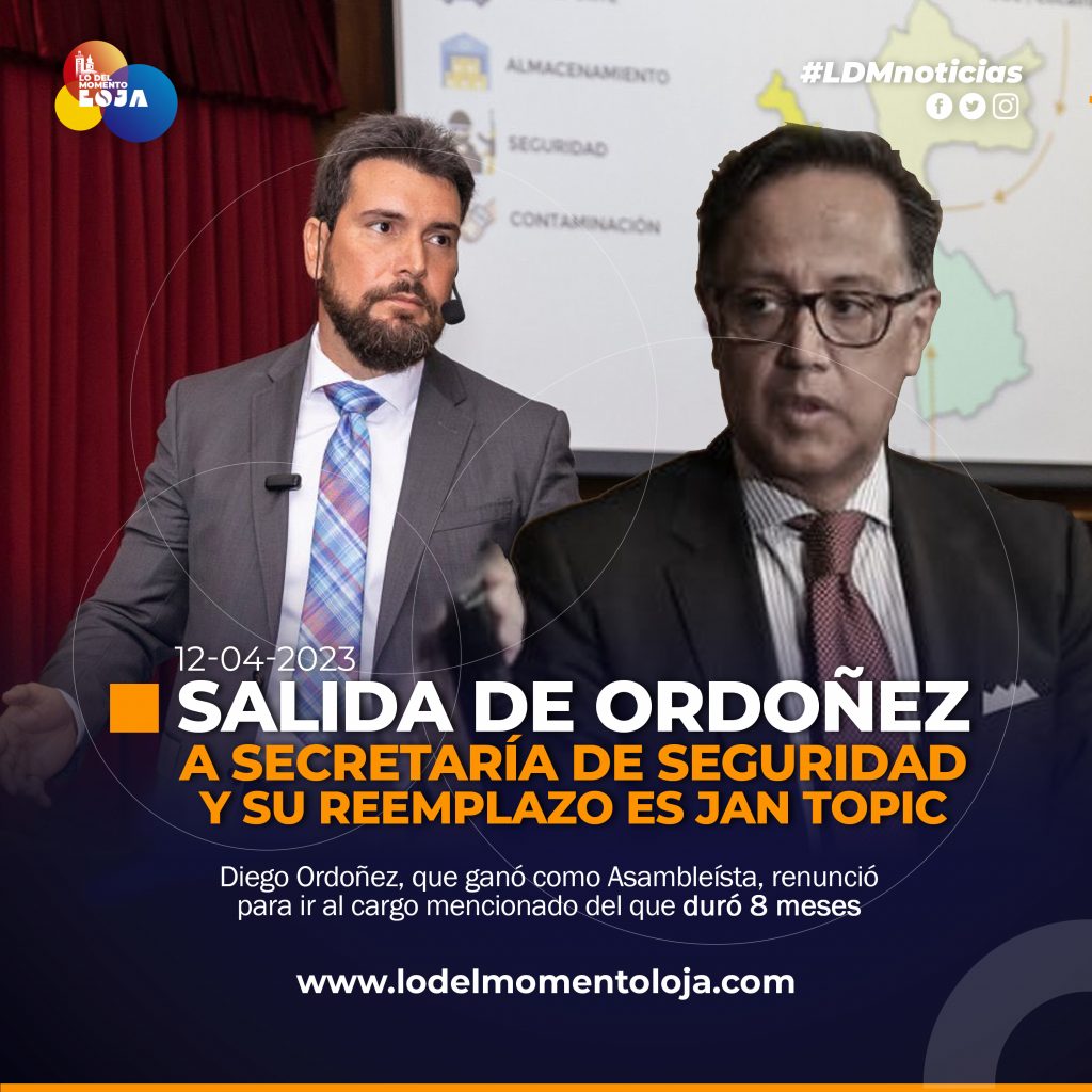 Diego Ordoñez no seguirá más en la Secretaría de Seguridad Pública y del Estado en una confirmación a un diario de circulación nacional, por lo que el ex consejero presidencial de 58 años se marcharía en medio de una ola de violencia nunca antes vista en el país luego de ocho meses -posesión 2 de agosto 2022- en el cargo. El nuevo reemplazo esta secretaría es Jan Topic, experto en seguridad pública y privada con formación militar en la legión extranjera y prestó servicio en el combate entre Ucrania y Rusia.