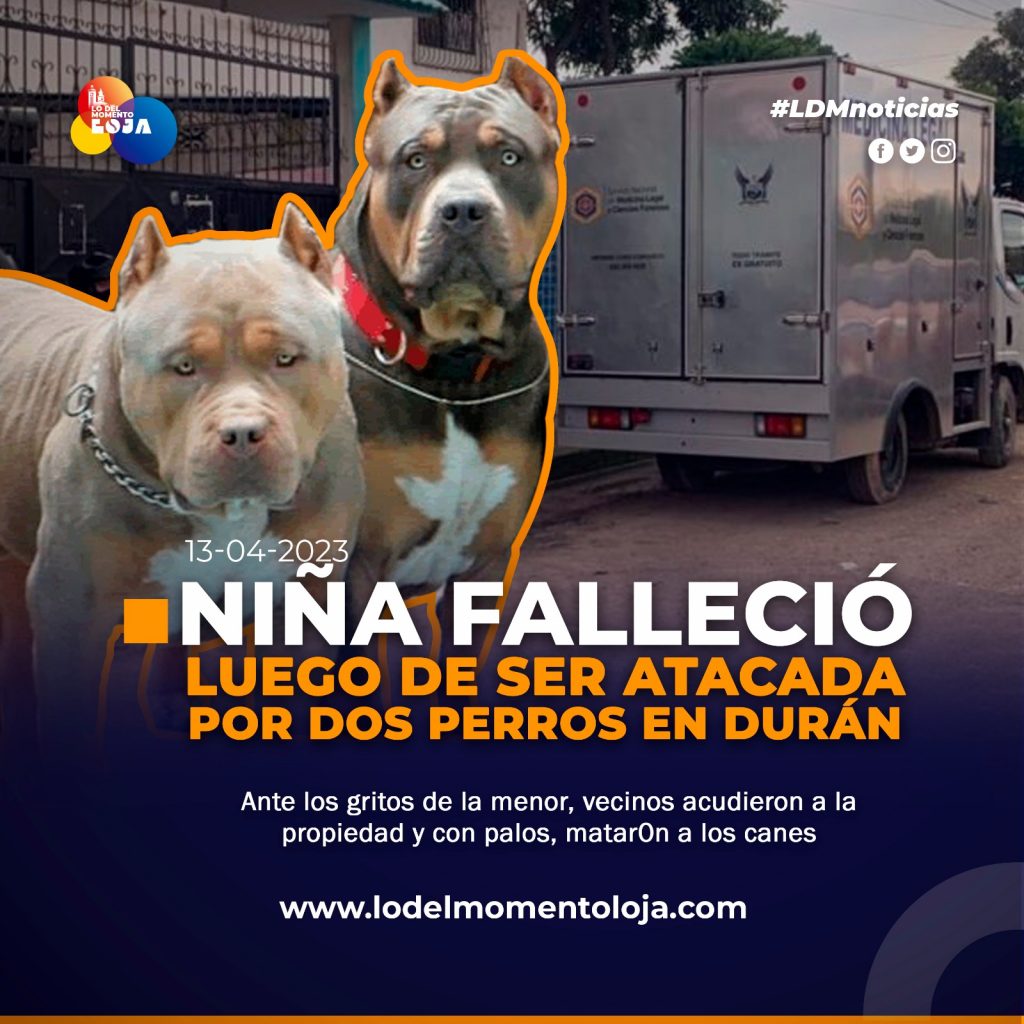 Una niña de nueve años falleció tras el ataque de dos perros de raza pitbull que eran parte de la familia. El hecho sucedió este miércoles 12 de abril de 2023 en el sector Los Tubos, en el cantón Durán en Guayas.