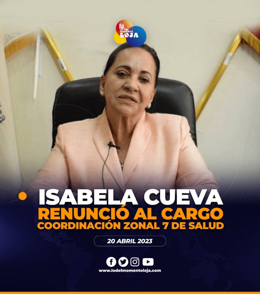 🫡🏥👋🏼 ¡Ahí nos vemos! La doctora Isabel Cueva Ortega dio a conocer su renuncia al cargo de Coordinadora Zonal 7 de Salud, a través de una rueda de prensa la tarde de este jueves 20 de abril de 2023.