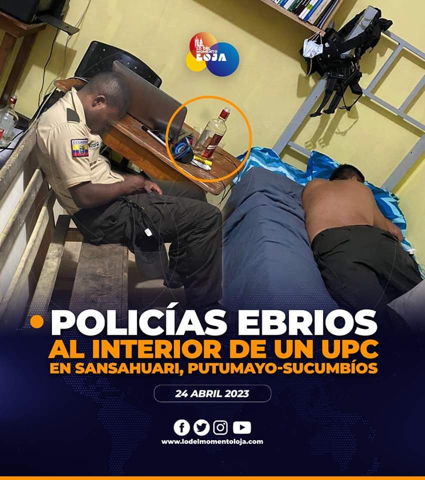🍻🥃🥴 ¡Los descubrieron! A través de redes se han viralizado imágenes en donde varios miembros de PP.NN. fueron captados en estado etílico en el interior de una UPC ubicada en la parroquia Sansahuari del cantón Putumayo, provincia de Sucumbíos. Al momento las autoridades no se han pronunciado ante dicho suceso.