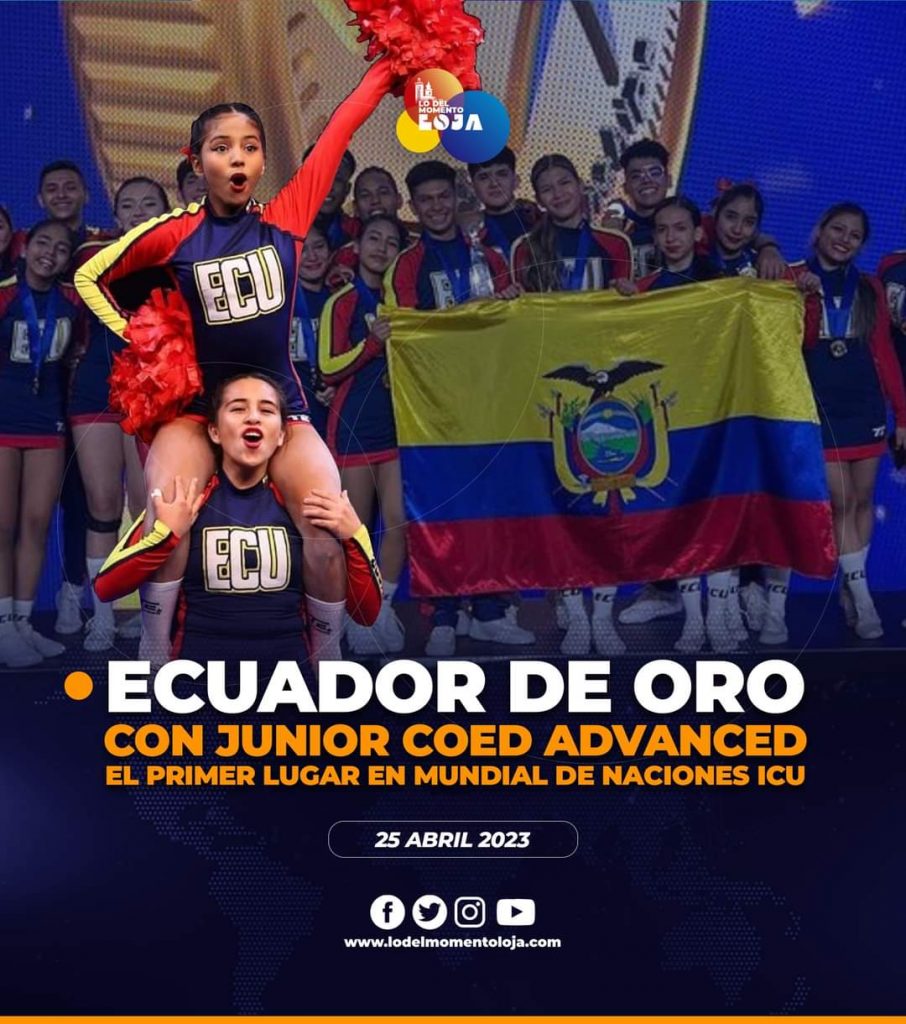 🇪🇨🏆🤸🏻♀️ ¡Si se pudo! Ecuador obtuvo el oro en el Mundial de Naciones de Cheerleading en la categoría Junior Coed Advanced donde compiten jóvenes entre 15 a 19 años. Además en el certamen se destacó la participación de los tricolores en las categorías Junior, Youth at Girl y HIP HOP.