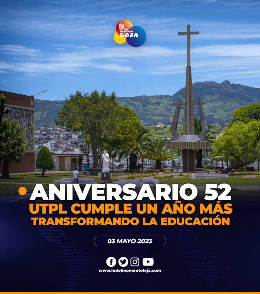 Este 3 de mayo, la Universidad Técnica Particular de Loja (UTPL) celebra un aniversario más de vida institucional, y lo hace con gran orgullo y satisfacción por los logros obtenidos en diferentes áreas del conocimiento, teniendo como horizonte principal el humanismo de Cristo que se traduce en sentido de perfección, en compromiso institucional, en servicio a la sociedad, en mejora continua y en la búsqueda constante de la excelencia.