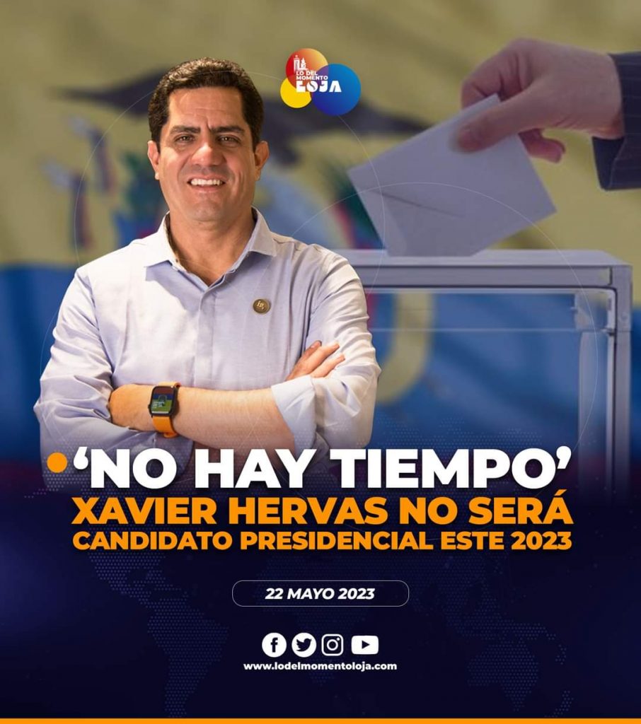 ⏰😅👍🏻¡Quedará para otra! El Ing. Xavier Hervas a través de una entrevista a Primera Hora, confirmó que no será candidato a la presidencia de la República del Ecuador. “No hay tiempo” aclaró el empresario, además agregó que no apoyará a ningún otro aspirante a dicho cargo.