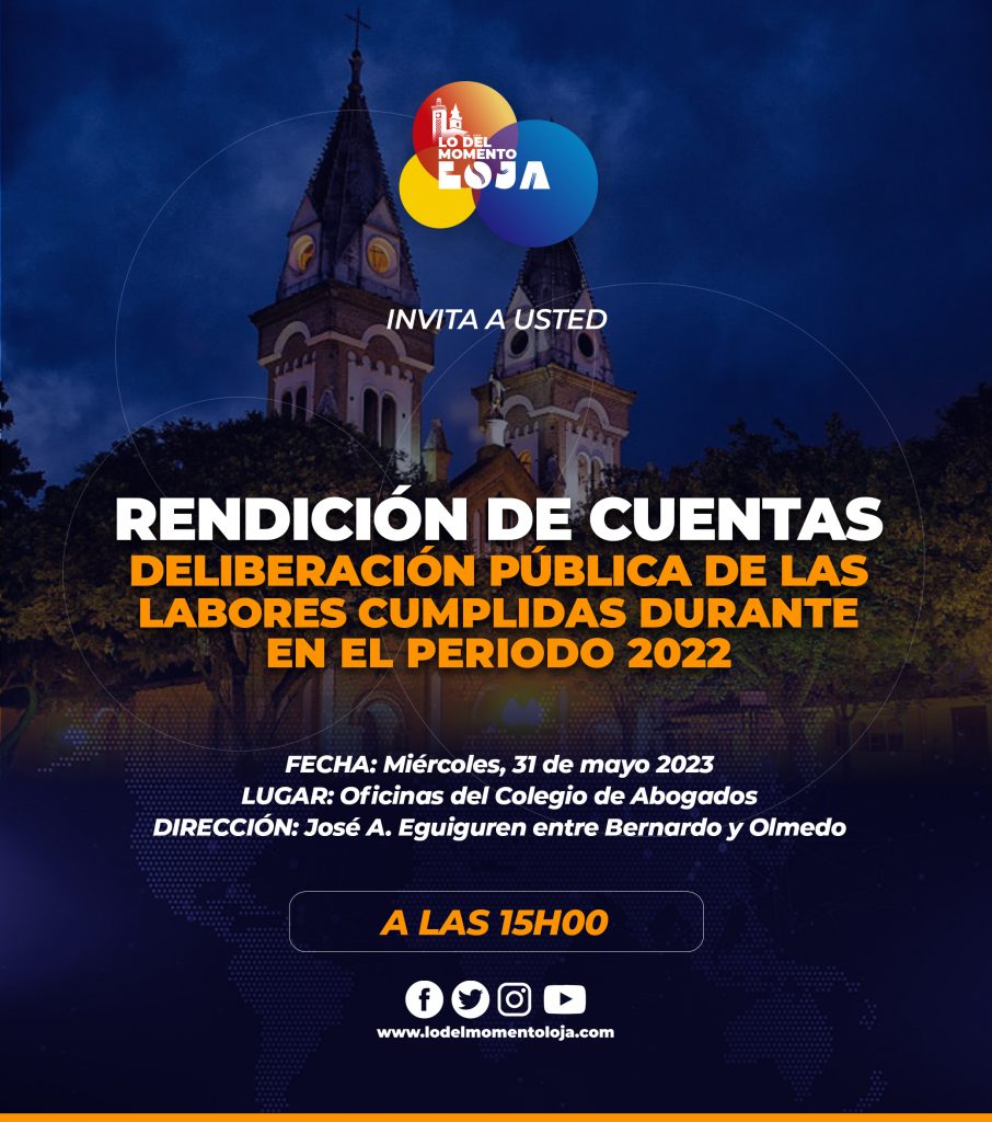 Hacemos la cordial invitación a todas las personas a conectarse o asistir a nuestra rendición de cuentas, el mismo que se llevara a cabo el día miércoles 31 de mayo del año en curso.