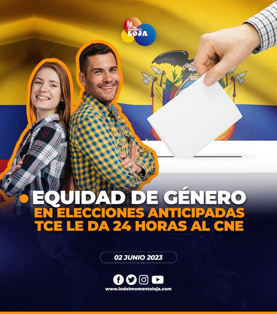 ¡Se busca la equidad de género! Tras haber sido aceptado parcialmente el recurso subjetivo contencioso electoral signado con el Nro. 159-2923-TCE, se dispuso al CNE a través de de su presidenta, que en el plazo de 24 horas, cumpla con los principios de equidad, paridad, alternabilidad, secuencialidad entre mujeres y hombres, tanto de principales como de suplentes, en las listas pluripersonales y en los binomios presidenciales, al momento de las inscripciones de las candidaturas.