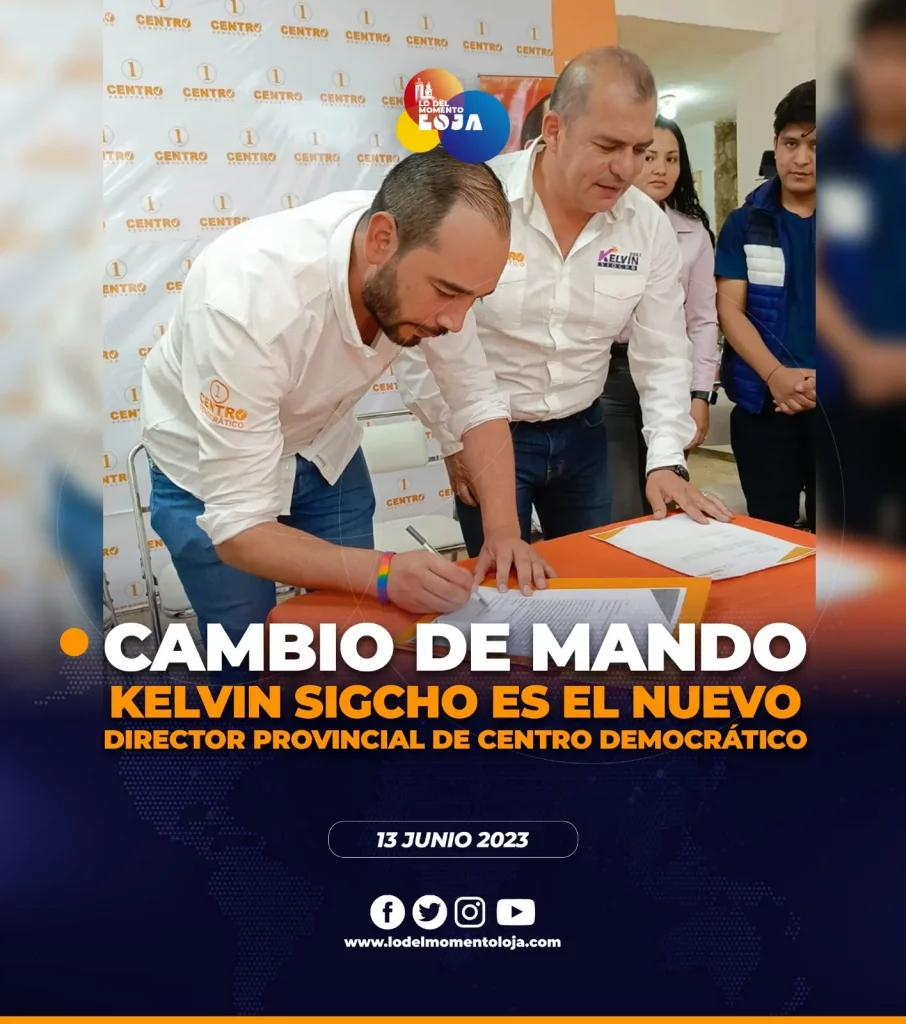 🗳️✍️☝️¡Hay un nuevo Director! Desde la sede del movimiento político Centro Democrático en la provincia de Loja, se acaba de posesionar al Ing. Kelvin Sigcho como el nuevo Director Provincial de la lista 1, y de aquí en adelante continuarán con un proyecto político que generé un potencial productivo y emprendedor; además, de respaldar a los candidatos a la Asamblea Nacional.