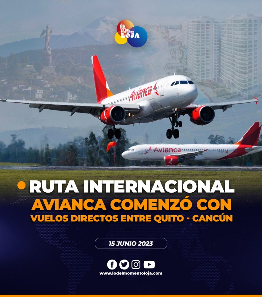 🇪🇨🛫🇲🇽 ¡Ruta inaugurada! Con un arco de agua fue despedido el primer vuelo (directo) que partió este jueves desde Quito a Cancún, por parte de la empresa Avianca. La empresa aérea tendrá inicialmente tres vuelos semanales a ese destino mexicano.
