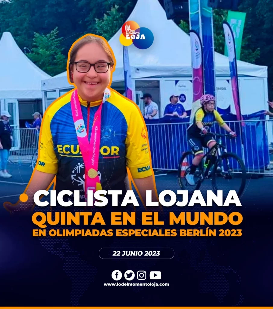 🇪🇨🥹👏🏼 ¡Orgullo lojano! La ciclista lojana, Camila Castillo, obtuvo un reconocimiento por su gran desempeño en las Olimpiadas Especiales Berlín 2023, tras competir en la categoría 2k (contrarreloj), logrando la quinta ubicación en dicha prueba.
