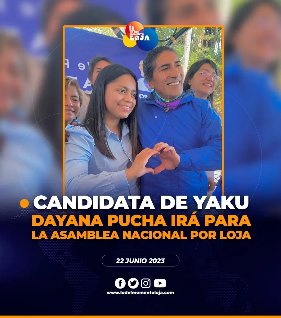 🤝👩🏻💧¡Una mujer irá por Yaku! De acuerdo a la Notificación 014-2023 de fecha 20 de Junio, la Junta Provincial Electoral de Loja ya calificó a los candidatos a la Asamblea por Loja por la Alianza “CLARO QUE SE PUEDE” Listas 2 -17-20, dicha organización política estará encabezada por Dayana Pucha como primera candidata a la Asamblea, acompañada de Fernando Carrion, Janella Aguirre y Pablo Sigcho.