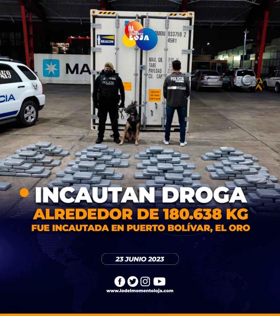 😱👮🏻💪🏼 ¡Golpe al narcotráfico! Gracias a la oportuna inspección de unidades policiales en un contenedor que transportaba banano, en el Puerto Bolívar, en El Oro, se logró incautar 180.638 Kg de droga.