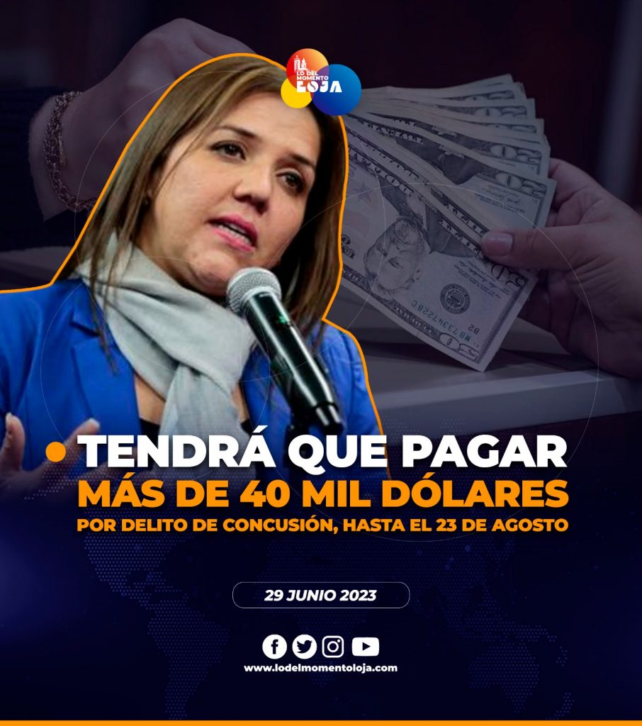 😱💰⚖️ ¡Todo por los diezmos! La sala penal de la Corte Nacional de Justicia, ratificó un dictamen en donde la exasambleísta y exvicepresidenta de la república, María Alejandra Vicuña, tiene el plazo hasta el 23 de agosto del 2023 para pagar un total de USD 43.295 dólares por el delito de concusión, tras cobrar diezmos a funcionarios públicos.