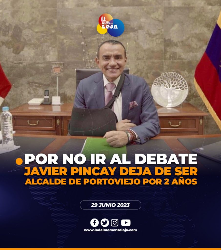 ¡CNE les advirtió si no lo hacen! El Tribunal Contencioso Electoral decidió quitarle los derechos políticos al alcalde de Portoviejo, Javier Pincay y además multarlo con USD 9.000 por infracción electoral, esto tras no presentarse a los debates electorales obligatorios previo a las elecciones del pasado 5 de febrero.