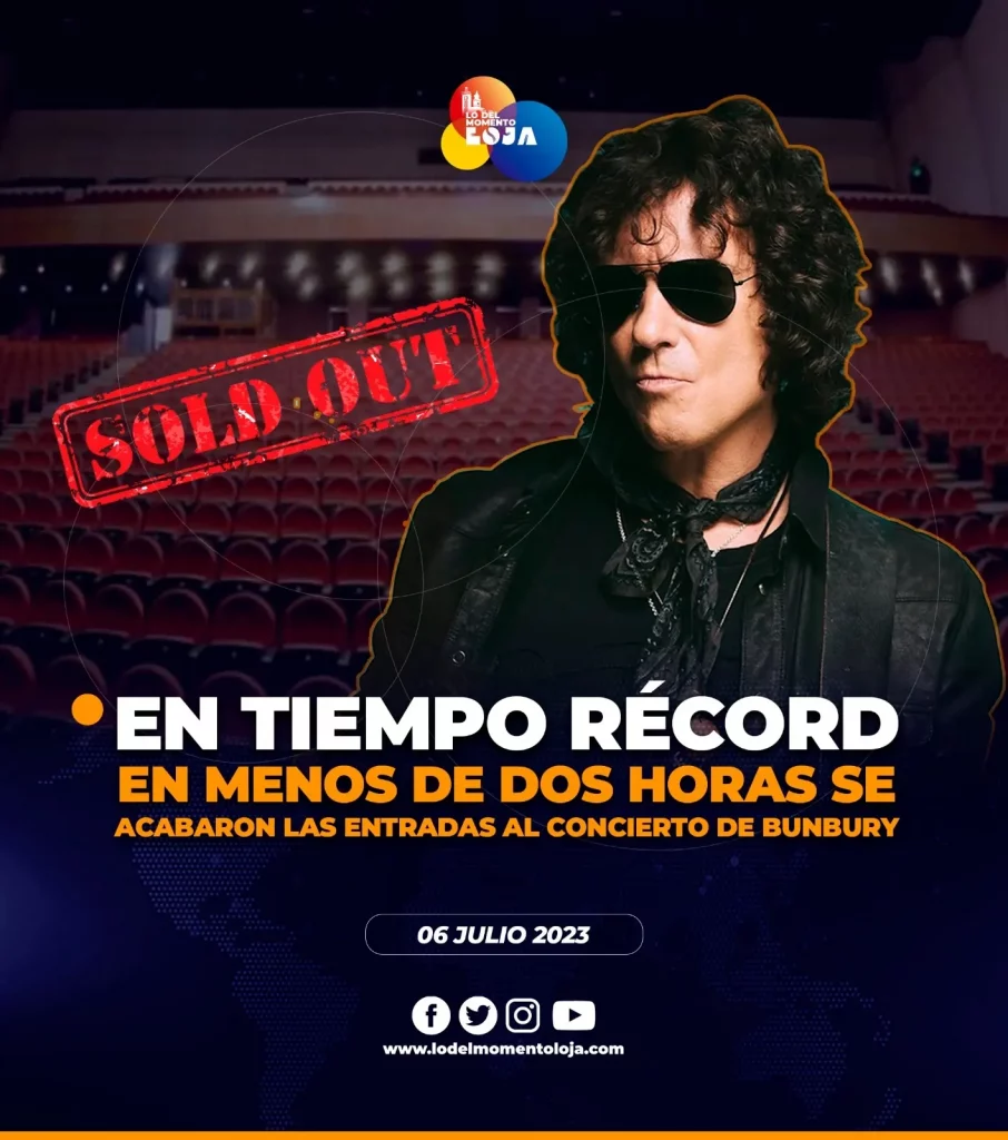 😱🧑🏻🎤🎟️ ¡SOLD OUT! La leyenda del rock alternativo, regresará a Ecuador después de más de siete años para ofrecer un concierto inolvidable el próximo 14 de diciembre. Bunbury, a través de sus redes sociales dio a conocer que las entradas para su concierto en Quito (Agora de la Casa de la Cultura) se han agotado en tiempo récord.