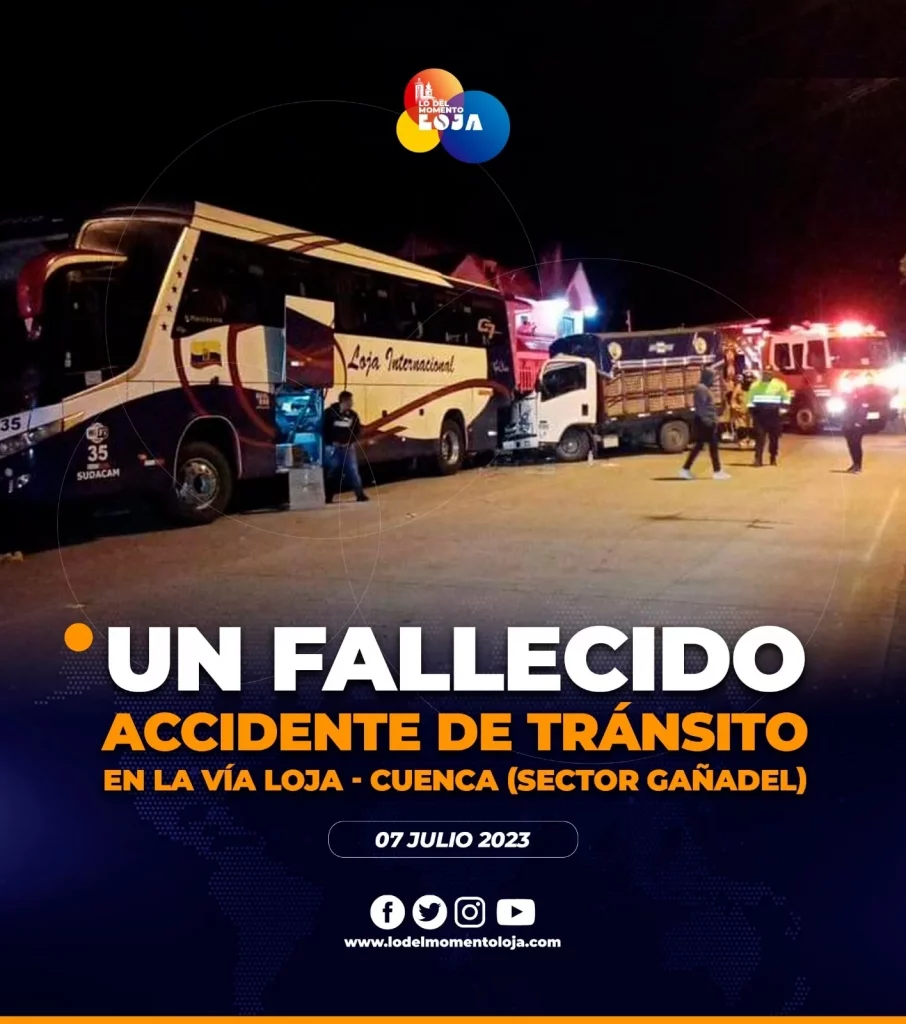 🥺💥🚚 ¡Fuerte impacto! La madrugada de este 07 de julio, un camión se impactó contra un bus interprovincial, en la vía Cuenca-Loja, sector Gañadel. Como saldo de este suceso se registró una persona fallecida y tres heridos, además de varios daños materiales. Personal paramédico de la Cruz Roja y Cuerpo de Bomberos brindaron atención prehospitalaria.