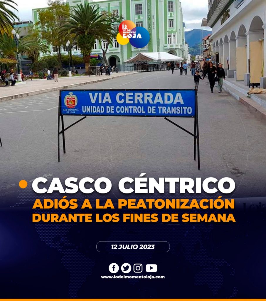 🚧🚫🚶🏻 ¡No más peatonización! Desde el domingo 9 de julio, el casco céntrico de la ciudad de Loja, dejó de ser peatonizado (fines de semana) y desde ahora el paso estará habilitado para el tránsito vehicular con regularidad, con el fin de fortalecer la reactivación económica de los comercios y locales de estas zonas.