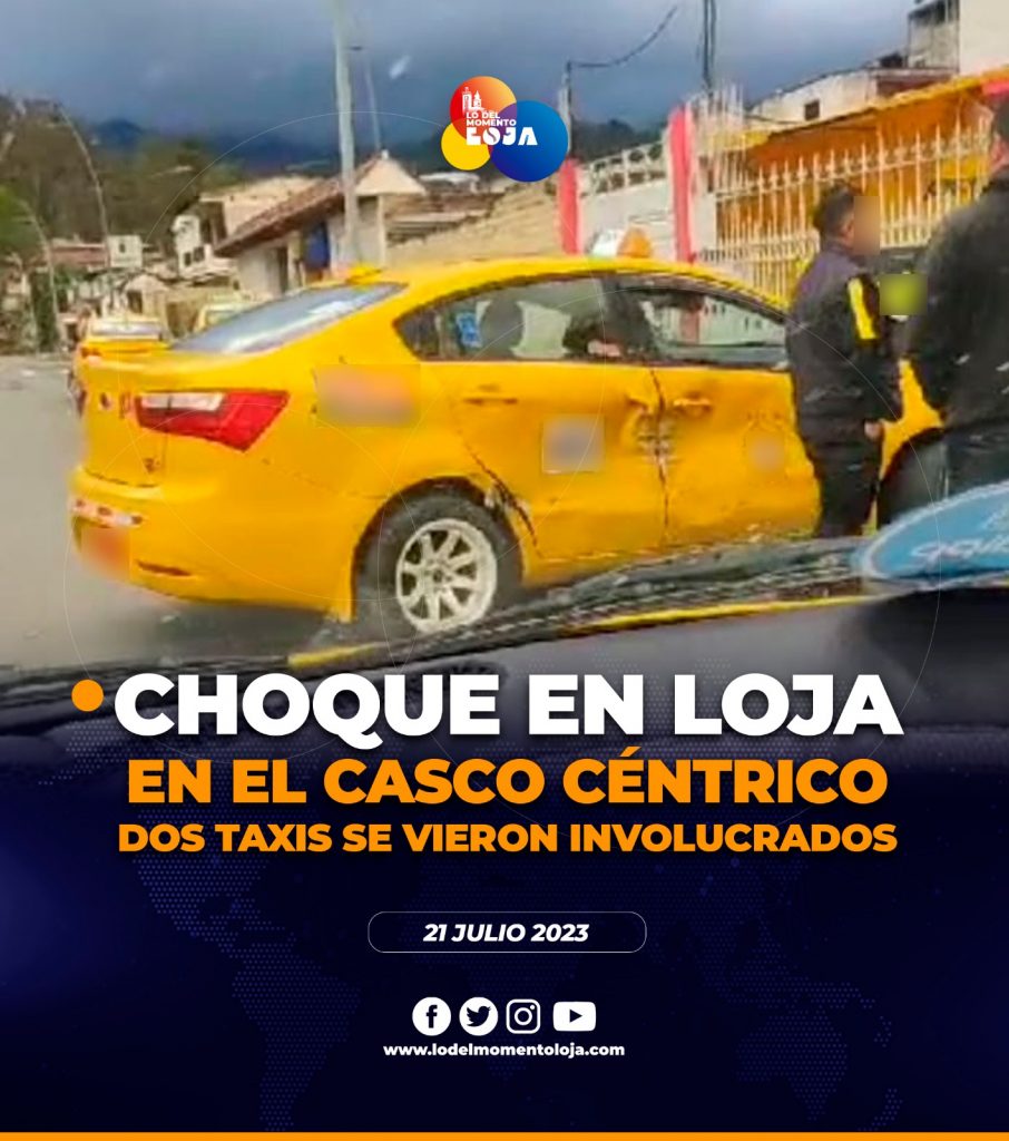 😱💥🚕 ¡Se dieron fuerte! En horas de la mañana de este viernes 21 de julio, dos vehículos (taxis) se vieron involucrados en un accidente de tránsito que deja como saldo varios daños materiales, el suceso se registró a la altura de las calles Macará y Lourdes.