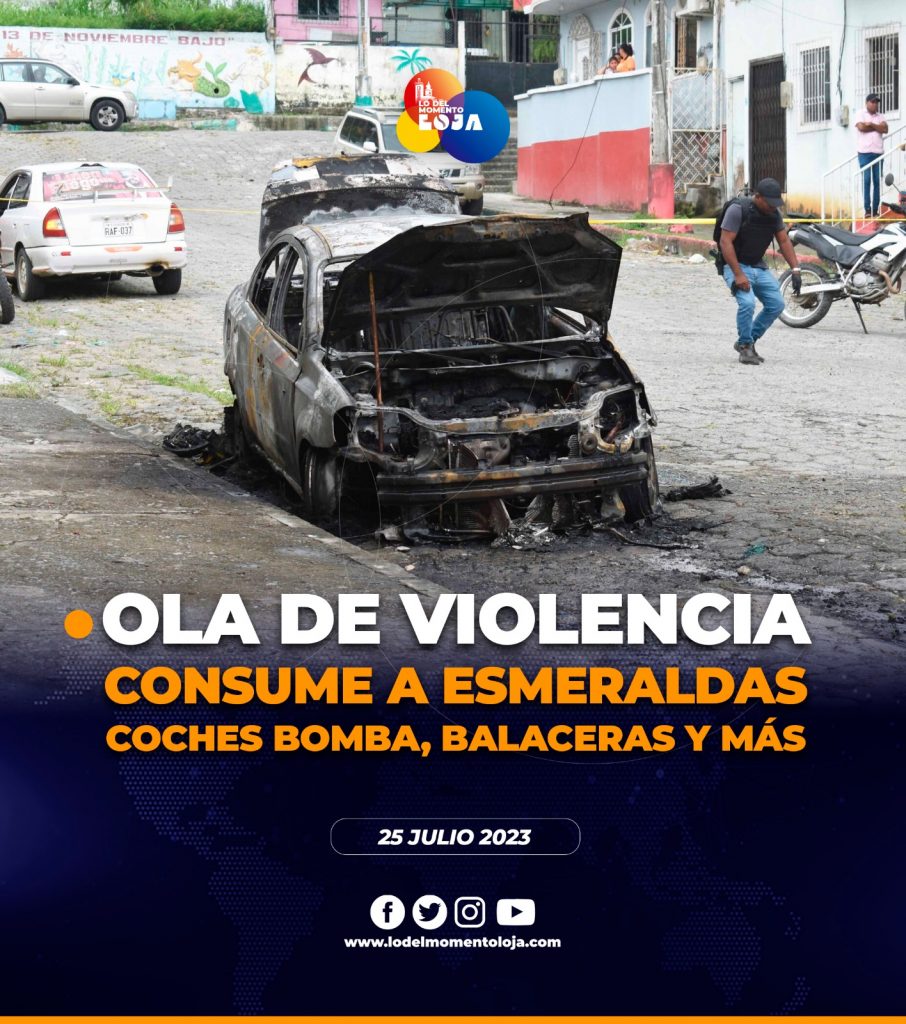 😱👀🔫 ¡La delincuencia no cesa! Varios sectores de Esmeraldas fueron víctimas de atentados, explosivos, coches bomba, cruce de balas entre policías y delincuentes y guías penitenciarios retenidos. Ante los hechos violentos, las clases en diferentes instituciones educativas fueron suspendidas, la Terminal Terrestre evacuada y varios locales comerciales cerrados. Uniformados se trasladan hasta dicha provincia para combatir la delincuencia.