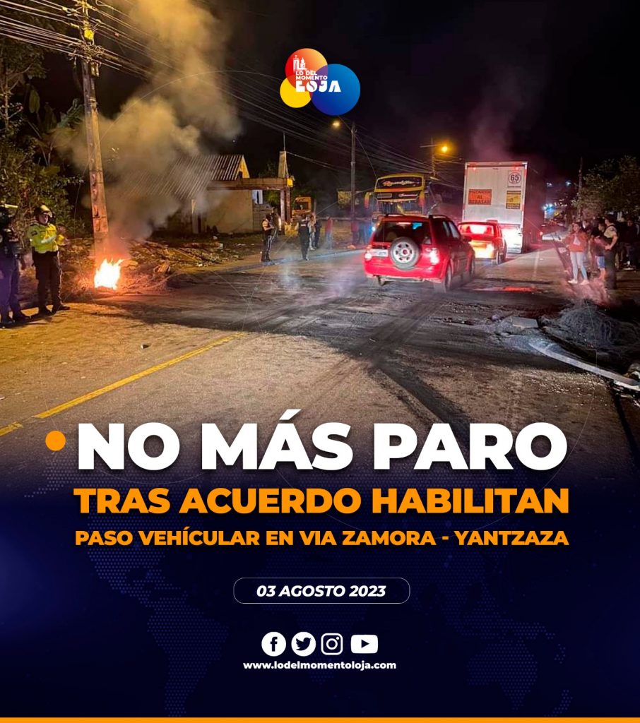 😱⚠️✋🏻 ¡Se levanta el paro! Durante las primeras horas de la mañana de este 03 de agosto y tras un acuerdo entre Gobernador de Zamora Chinchipe Absalón Campoverde, Prefecta de la provincia Karla Reategui y sector minero, la vía Zamora – Yantzaza se habilita al paso vehicular.